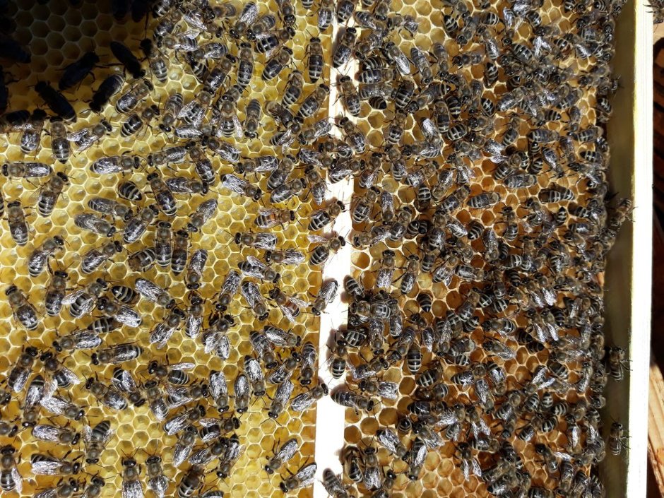 В прошлом году разделил пополам рамку на 300 дополнительной планкой по высоте, верх навощил пчелиной, а низ - полоской трутневой, без проволоки. Поставил в семьи по одной такой рамке - очень понравилось, тянут низ трутневыми ячейками, не портят на это остальные рамки в гнезде, выводят пару генераций трутня, ну и трутень от маток F1 породистый идет - улучшение трутневого фона. Вот тут трутневая вощина нашла разумное применение. Сот, кстати, вырезать можно для борьбы с клещом и на переработку в трутневой гомогенат. Строительная рамка, но целую в 10-рамочном гнезде под трутня мне жалко было пускать.