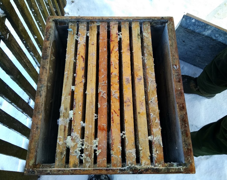 Нельзя в зиму оставлять на узких улочках. Пчелы прячутся в ячейках, а те, которые между сотами их обогревают. В узкой улочке мало пчелы, и идёт перегрузка на этих пчел. В итоге понос обеспечен.