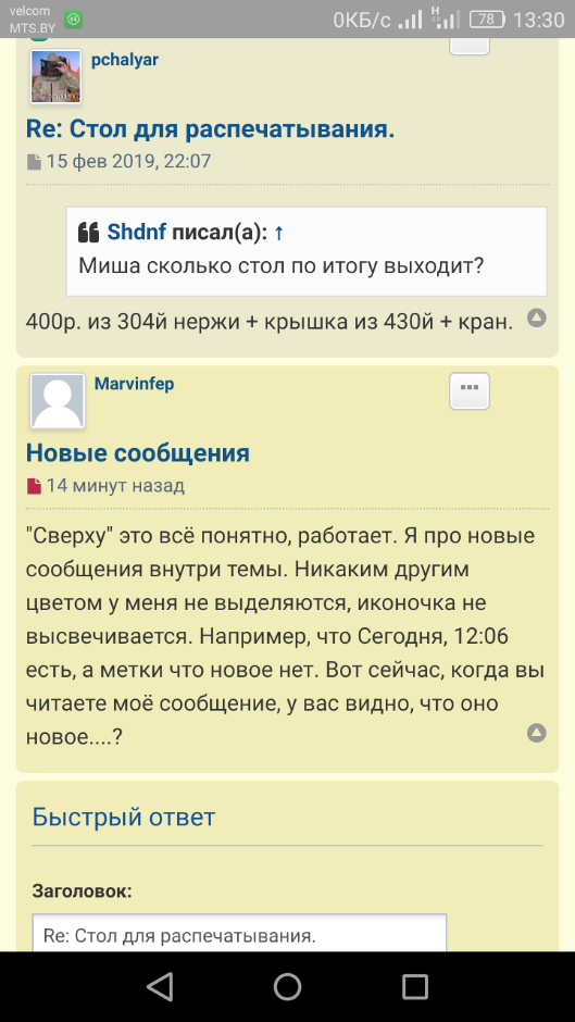 Видно.Marvinfep писал(а): 17 фев 2019, 13:14 "Сверху" это всё понятно, работает. Я про новые сообщения внутри темы. Никаким другим цветом у меня не выделяются, иконочка не высвечивается. Например, что Сегодня, 12:06 есть, а метки что новое нет. Вот сейчас, когда вы читаете моё сообщение, у вас видно, что оно новое....?