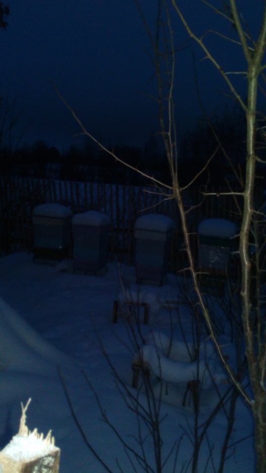 Мороз и солонце день чудесный закончился. Пчёлки сидели носа не показывая и сидеть им ещё как минимум месяц. Снег просел хорошо уже кротовины показываются, завтра вроде как + 3 обещают и потом опять морозики.
