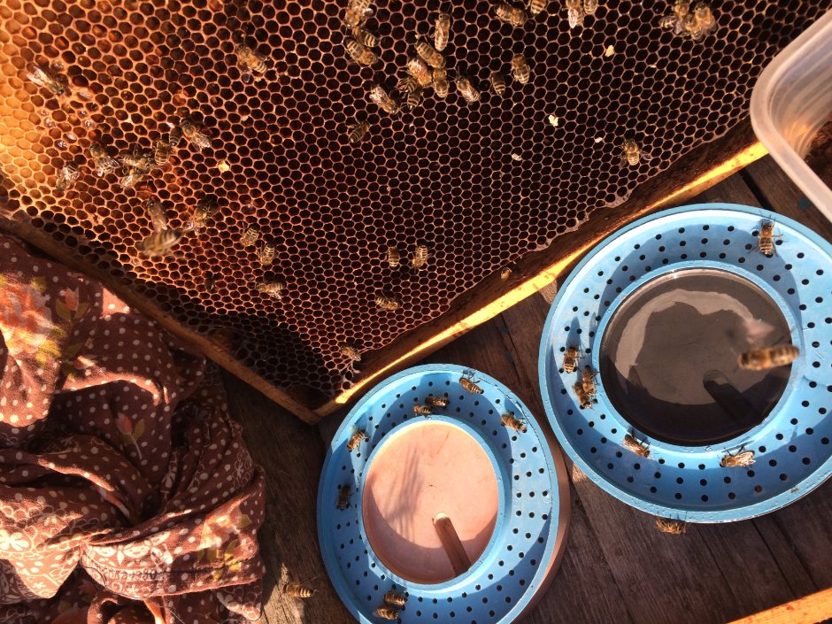 Лучше всего брали слегка подсоленую воду в поилках. Сыту залитую в соты брали меньше.