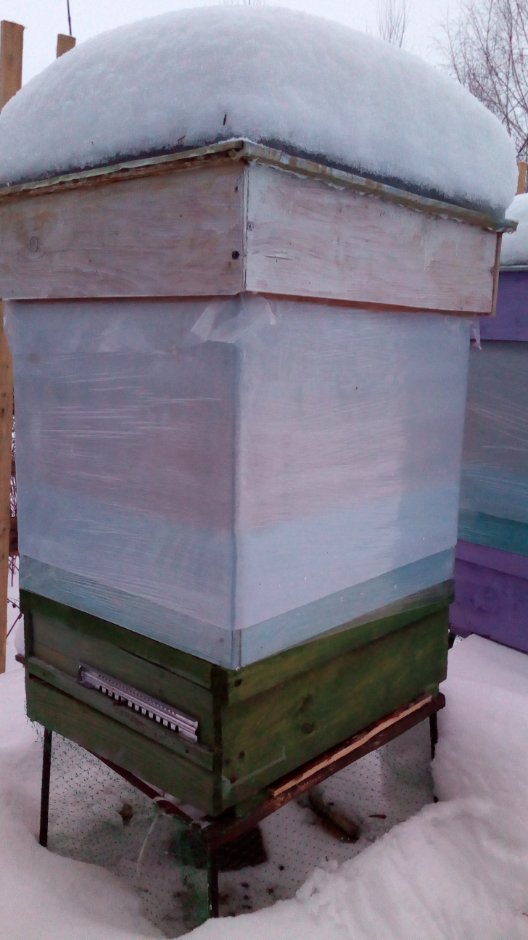 Причина неудачи считаю была в том, что ульи стояли на подставках и зимой через сетку свободно задувал ветер охлаждая клуб. От сетки до рамок было близко. Пчёлам приходилось усиленно греться и поэтому к весне семьи были чуть живые.